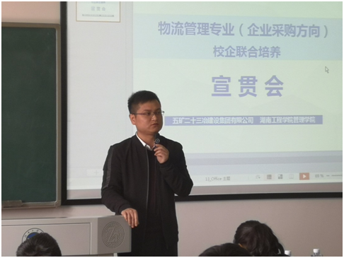 4月1日,我校管理学院邀请校企联合培养单位——五矿二十三冶人力资源部负责人及实习接收部门负责人入校与学生面对面交流,向同学们介绍“3+1”联合培养企业实习的安排情况,并现场回答同学们提出的各类问题。以上问答环节就是宣讲提问答疑的精彩一幕。为扎实推进物流管理专业综合改革,顺利让首批进驻企业进行“3+1”联合培养的同学能够消除顾虑,安心在企业学习,顺利完成培养计划任务,管理学院自去年以来,广泛联系考查业内优秀企业,洽谈联合培养,现已与京东、苏宁易购、德邦物流、五矿集团等业内知名企业达成联合培养意向,后期将陆续来校作联合培养宣讲。此次来宣讲的五矿二十三冶建设集团有限公司是以建筑施工、房地产开发、矿业、基础设施投资为主业的大型企业集团,为世界500强企业——中国五矿集团有限公司成员企业,中国五矿一类重要骨干子企业。