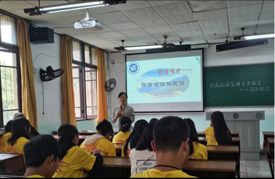 旅游管理1901班骆艳玲作为优秀学生代表向学校领导老师的培养教育表示感谢并分享了学习的经历感受,鼓励学弟学妹努力奋斗,投身社会主义的伟大建设。