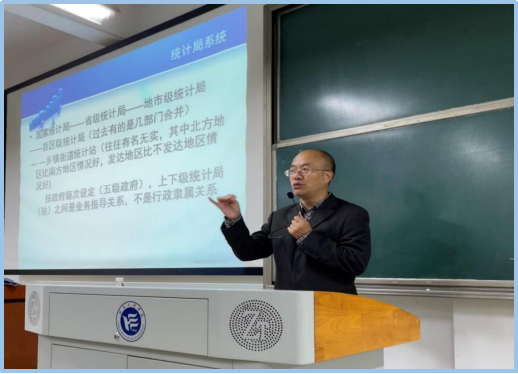 我国的统计体系是什么样的?毛主席是如何开展统计调研工作的?在各行各业的统计指标是如何计算的?江南屏局长以“管中窥豹:漫谈中国统计体系”为主题,先从我国的统计机构与统计体系开始,让学生了解到哪些机构发布的数据是权威可信的。再从毛主席的农村调研为大家讲授调研的基本方法,穿插了许多调研故事,让同学们体会到了农村实地调研是苦中有乐的。紧接着从农业统计、工业统计、批发业和零售业统计、住宿和餐饮业统计、社会消费品零售总额、房地产开发统计、服务业统计、互联网经济统计、能源消费统计、固定资产投资统计、劳动工资统计、企业创新活动统计、文化及相关产业综合统计、国民经济核算统计全方面为大家普及了统计指标与各方面的基本情况。最后为大家介绍了政府的统计产品,让同学们了解到从哪些层面获取权威数据。通过江南屏局长的讲解,各位同学对统计学有了更深层次的认知。