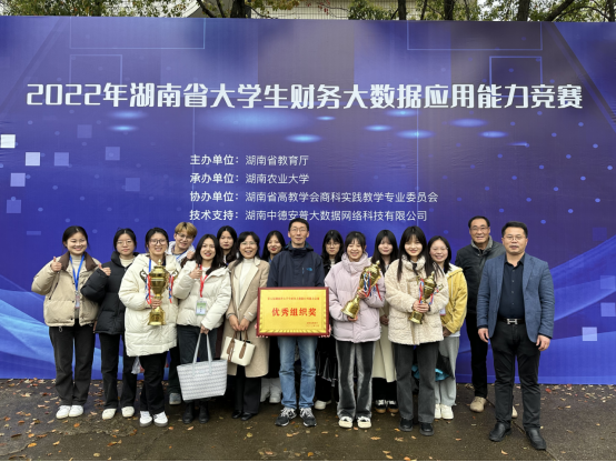 3月25日,由湖南省教育厅主办,湖南农业大学承办,湖南省高教学会商科实践专业委员会协办的2022年湖南省大学生财务大数据应用能力竞赛落下帷幕。我院学子成绩斐然,荣获一等奖2项、三等奖1项,同时,我校获得“优秀组织奖”,创造了我院参加该项赛事以来的历史最佳成绩。