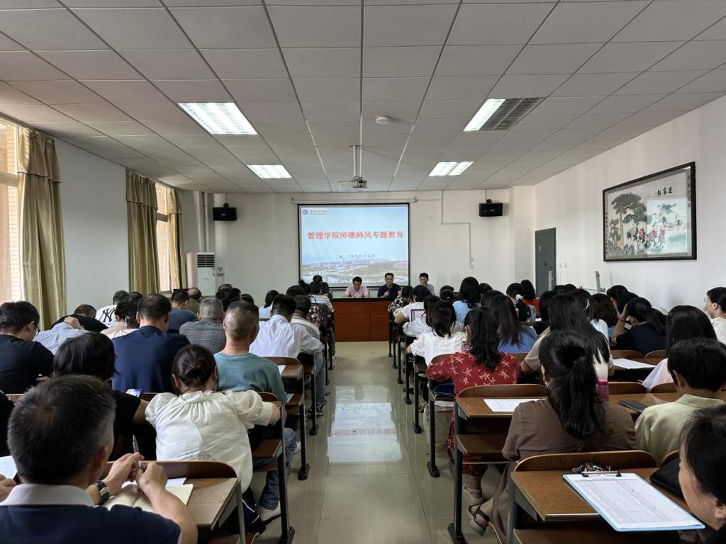 2023年9月19日下午,管理学院在G505召开师德师风建设专题会议,由余博书记主持,全体老师参加。