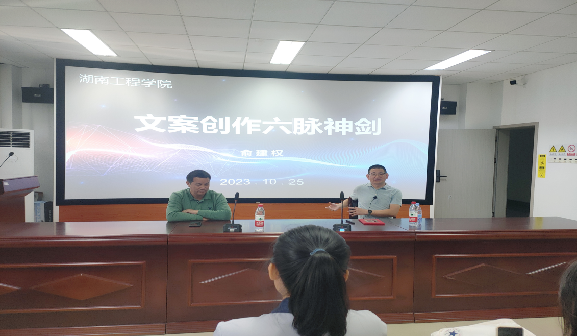 讲座伊始,徐运保致辞,为俞建权举行客座教授受聘仪式,对俞建权的到来表示热烈欢迎。随后,俞建权以“文案创作”为主题,围绕“特性、受众、目标”三个方面为同学们讲授写文要点,并介绍了一些营销爆款文案写作技巧,指出“好的文案能够与目标受众建立情感共鸣,反映消费者的性格,展示产品引人注目之处”。