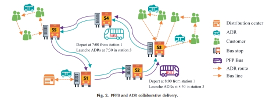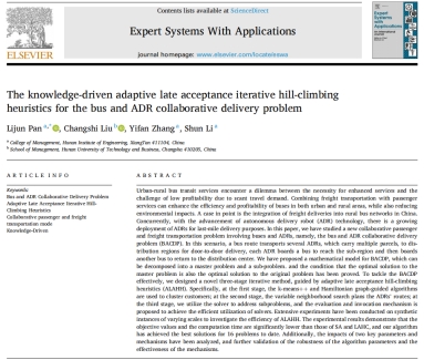 近日,我院物流管理与优化团队在客货邮融合领域取得重要研究进展。团队基于自动配送机器人(ADR)技术的快速发展,提出了一种城乡公交班车协同ADR开展快递投递服务的模式,并针对该组织模式的关键调度问题——公交与ADR协作配送车辆调度问题进行了数学建模与特征研究,并成功提出一种知识驱动的自适应延迟接受迭代爬山启发式算法高效求解了该问题,为城乡客货邮融合开展提供了新模式与新方法。