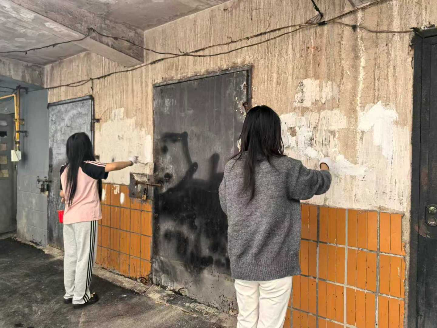志愿者协助社区设施刷漆