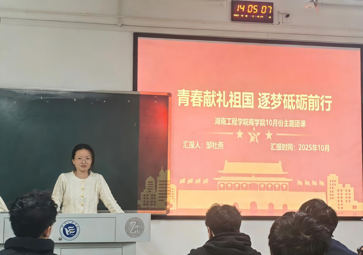 为引领青年学子深刻领悟新时代的使命,激发奋进力量。ok138cn太阳集团于10月23日下午在主教学楼A309教室举办“青春献礼祖国,逐梦砥砺前行”主题团课。本次团课由ok138cn太阳集团团委书记邹牡燕主讲,各班团员代表共同参与。