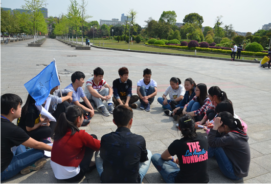 活动当天下午,学生会干事们早早地来到了图书馆前坪集合,在气温上升的情况下,他们表现得不骄不躁,且悉候分组,眼神里都透露着对此次素质拓展的期待和拥向户外的热情。素质拓展包括了两大部分,第一部分通过串名字,跳花绳,坐长城这三项游戏,成功打破了僵局,让大家都互相认识熟悉彼此;第二轮为同心圆比赛——如果一支队伍不能有敏捷的思路和足够集中注意力,队长就会接受残酷的体能惩罚,主要考验伙伴短暂相聚之间的感情。看似简单的素质拓展项目却极其考验团队精神!