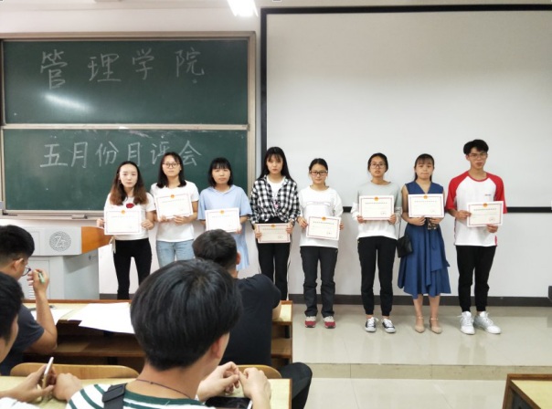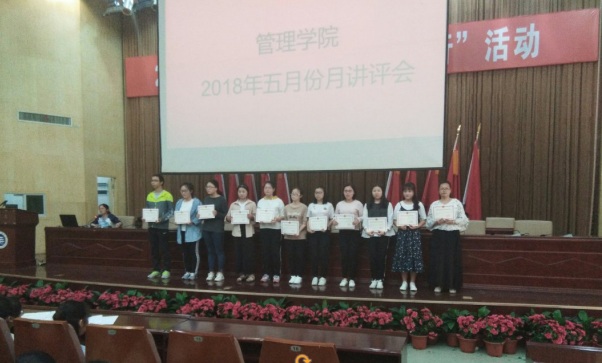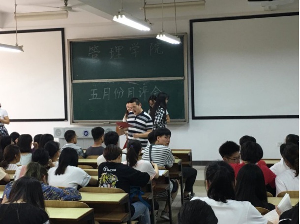 本月讲评主要内容如下: 一、公布管理学院四月份常规工作考核排名情况。二、近期工作的通报:1、学风建设工作:为积极响应配合学校的教学评估工作,达到各班级课堂的到课率和抬头率100%,给各班发放手机袋,全体同学手机按学号入袋统一管理,对拒绝上交手机的同学严肃处理。2.宿舍卫生方面:加强督促各班同学在宿舍进行扫除,如有宿舍同学拒绝大扫除的,交由班主任老师处理。3.教室卫生方面:加强文明督导环节工作,严禁同学带早餐进入教室,课后垃圾及时清理,共同维护好教室卫生。学校每日通过视频监控检查学生在教室的学习和卫生情况,凡收到全校通报批评,并扣分的情况,将在班级考核中对应扣分。4、党务工作:本月将开展入党积极分子培训考试;预备党员培训;完成党员发展对象材料等工作。5、团学工作:继续跟进督查青马工程网络培训;开展《超级班级》《我是演说家》《心理健康知识强大时》《街舞大赛》《健美操大赛》。6、创新创业工作:组织举办第四届太阳成“互联网+”大学生创新创业大赛暨湖南省大赛选拔赛的通知及相关文件,并由班长转发至班级群。7、颁发国家励志奖学金获奖证书同学。三、安全及心理健康教育:提醒同学们防骗,注意用电安全,提醒同学们防病,春夏之交多蚊虫蛇鼠之类,要做好防叮咬措施。