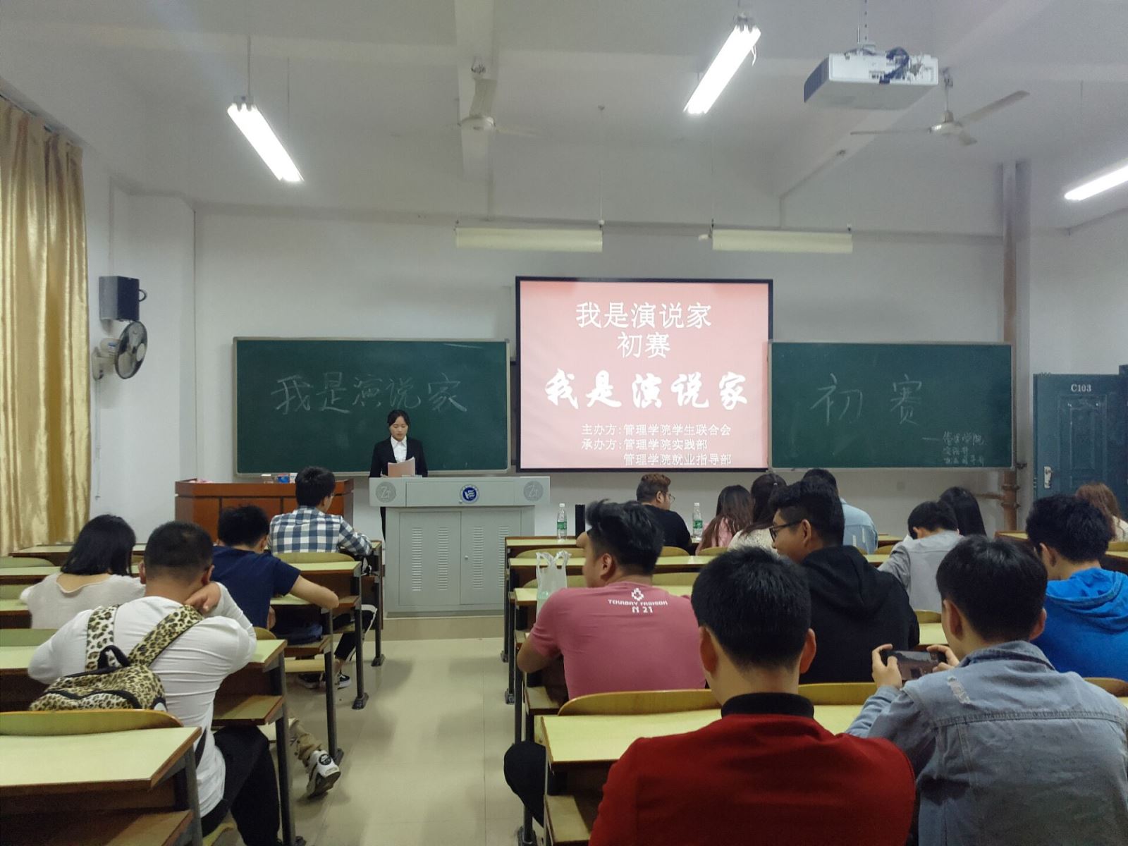 为了丰富同学的校园生活、锻炼同学们的表达技巧,提升同学们的自信心,由管理学院学生联合会主办、管理学院就业指导部和实践部联合承办的以“我是演说家,我为未来发声”为主题的“我是演说家”演讲比赛初赛于4月17日在新校区教学楼c103成功举办。