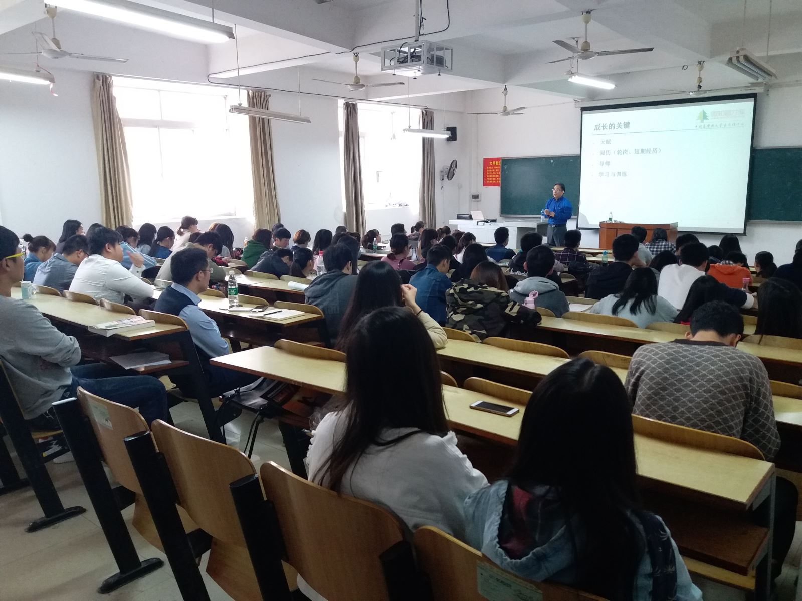 10月26日上午九点在新校区教学楼C209,微知著才库余建国老师为管理学院人力资源管理专业2014,2015级同学做了题为《如何成为专业的HR工作者》的讲座,人力资源教研室曹哲文老师,钟瑶老师,学生办公室包海燕老师参加了此次讲座。
