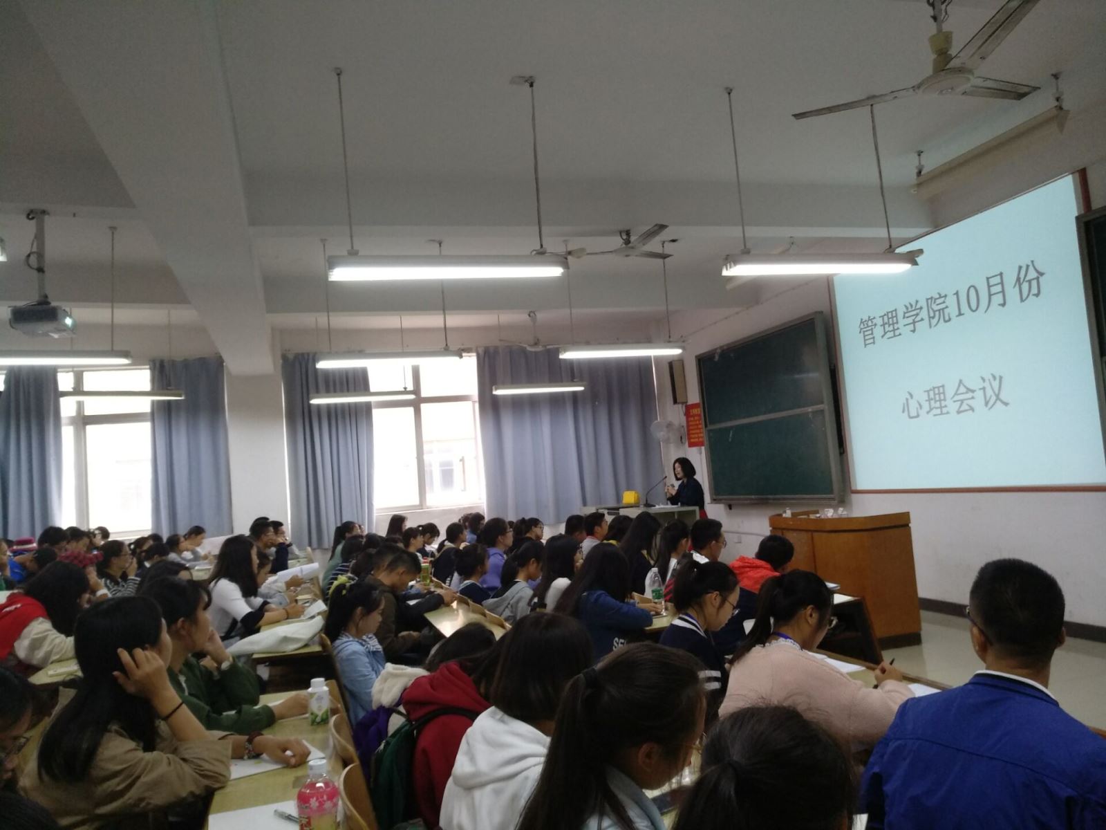 10月25 日中午,管理学院召开了10月份心理会议,此次会议由大一大二心理委员,大一全体寝室联络员及心理部干事共同参会,由学办主任罗荃老师主持召开,罗老师就近一个月学院整体表现做出了表扬及评价,着重强调了大一新生的各项工作,也让各个同学深刻领悟到心理工作的重要性,希望大家共同努力关注同学朋友,让身边的人每天都有一个好心情,让我们一起快乐成长!