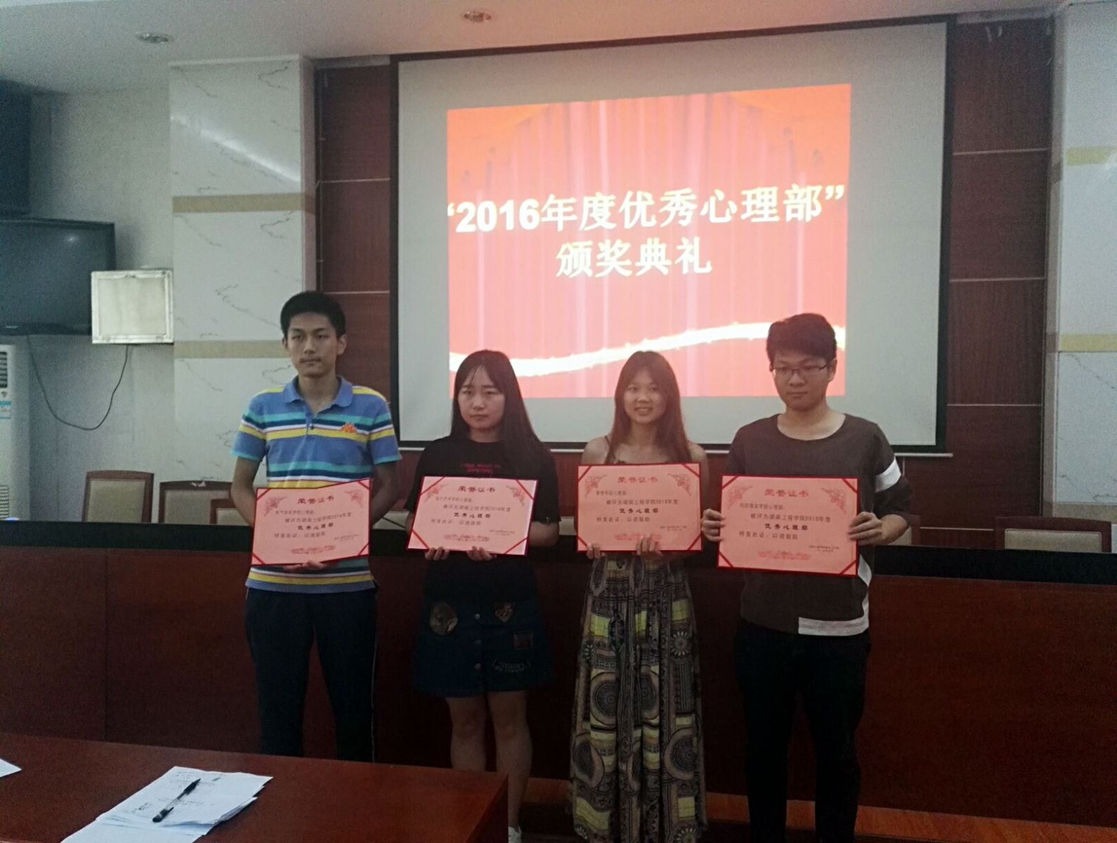 管理学院心理部由于工作有特色,获评“2016年度优秀心理部”。