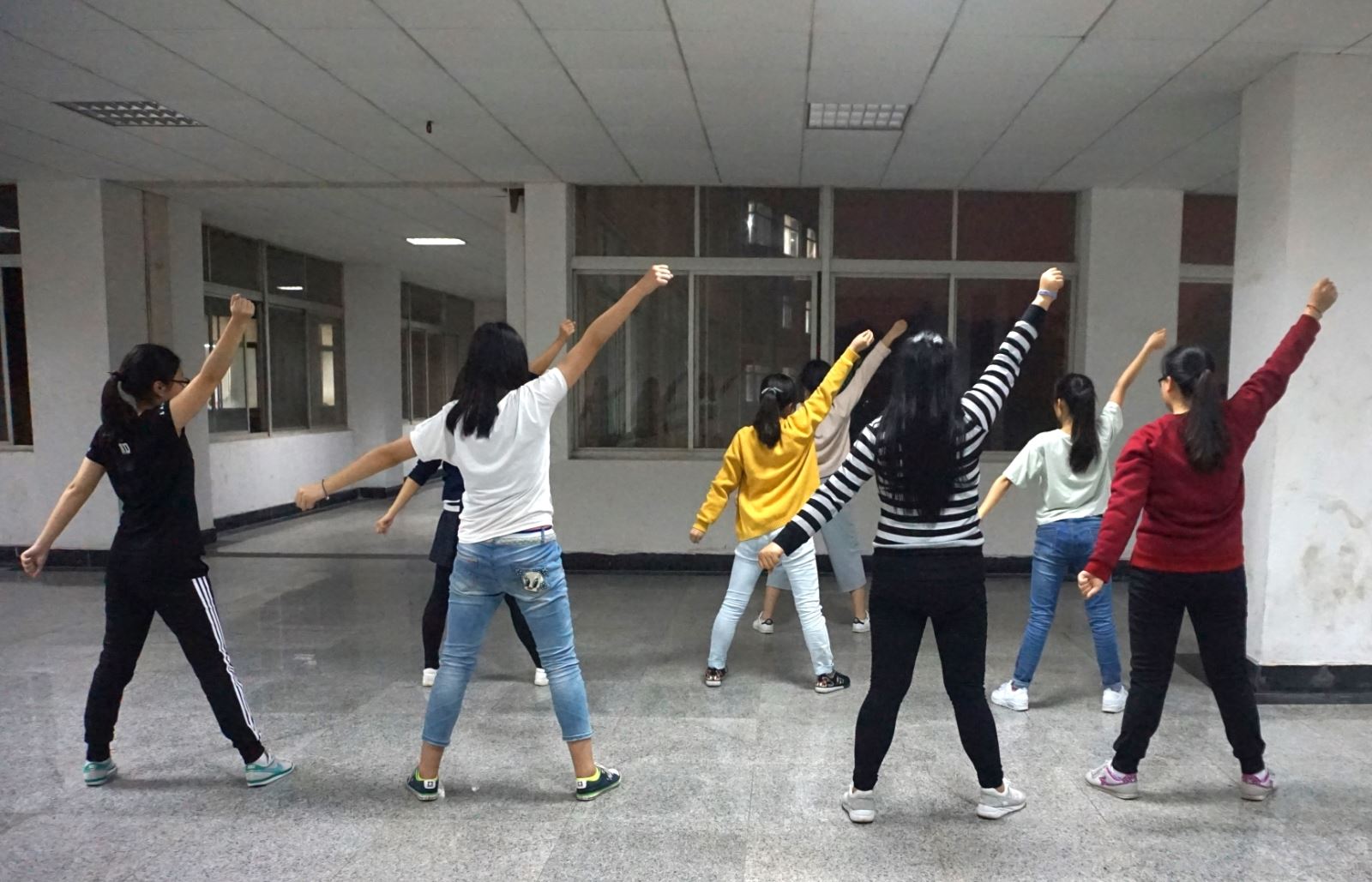 晚上七点至十点,在教学楼CD栋之间,总能寻找到管理学院健美操队的成员们的身影。管理学院健美操队是管理学院在2016年上学期正式规范化的比赛院队,他们的训练内容主要有健美操、啦啦操、有氧健身操和街舞,管理学院健美操队是一个大学生健美操爱好者们的福地。