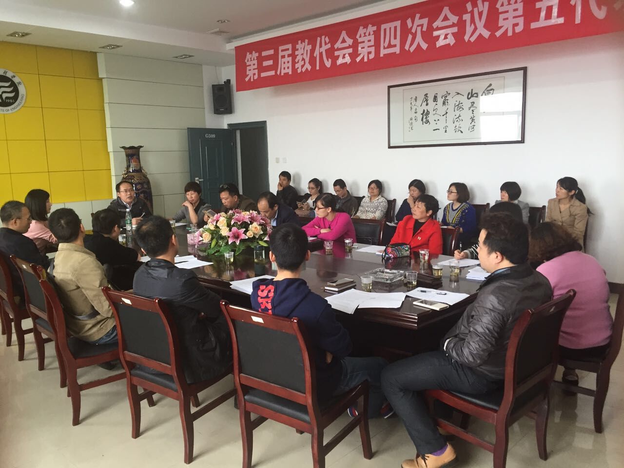 4月25日中午12点30分,管理学院在G509会议室召开班主任专题会议, 院党总支书记卢明纯主持会议,学院全体辅导员和班主任老师参加会议。