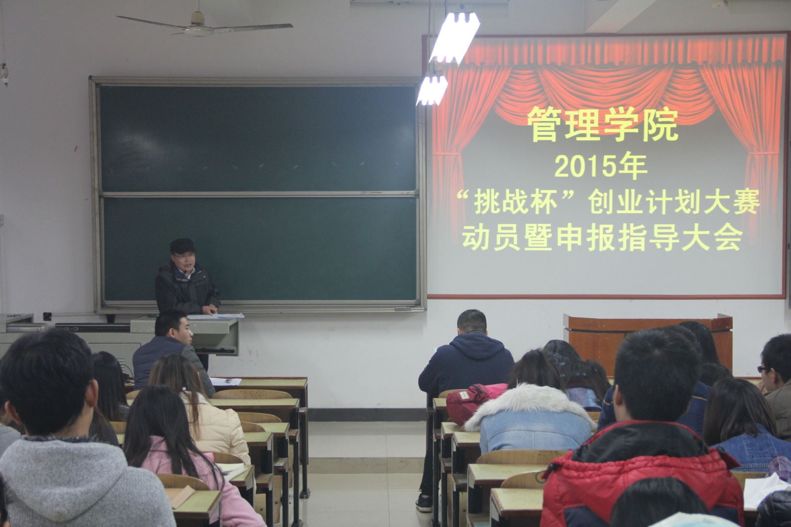为了进一步提高管理学院学生的科学研究水平和成果转化能力,培养一批具有创新意识、实践能力和创业精神的创新人才,激发大学生创业意识和自主创业的热情,2015年12月1日下午,管理学院在新校区D栋201举办“第六届‘挑战杯’创业计划大赛动员暨申报指导”大会,学院党总支书记卢明纯出席会议,党总支副书记钱祖煜主持会议,学办主任罗荃、团总支书记宋志航、学生会干部、SIYB学员、及部分项目团队成员参加会议。