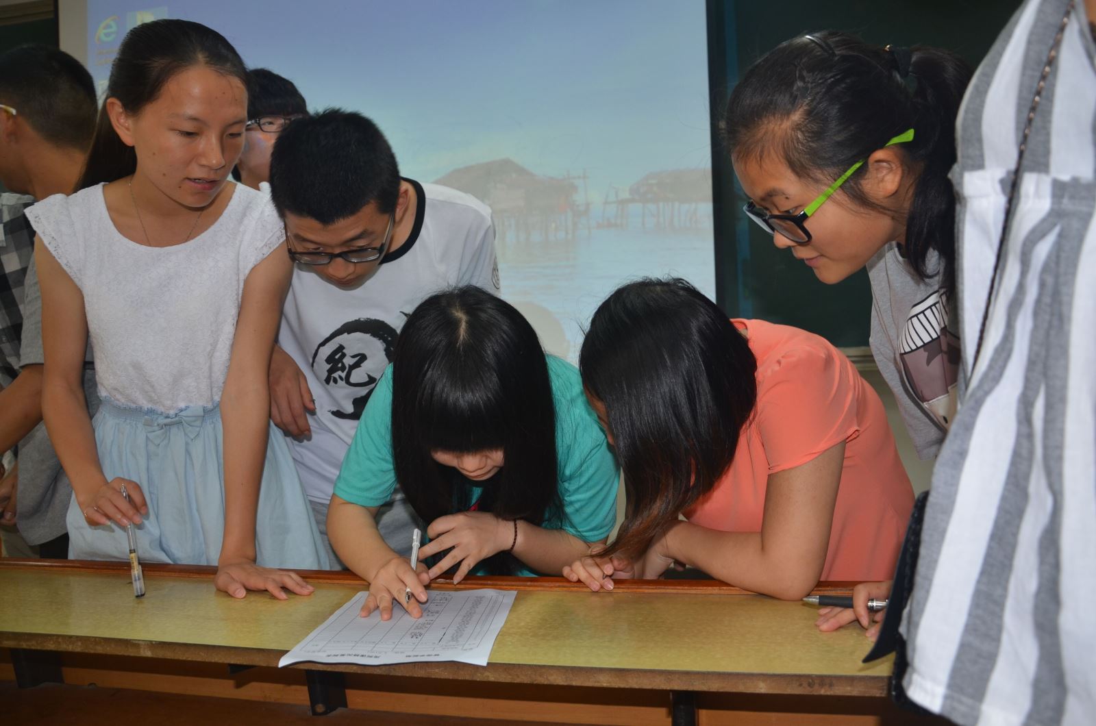 学生们课间认真签到