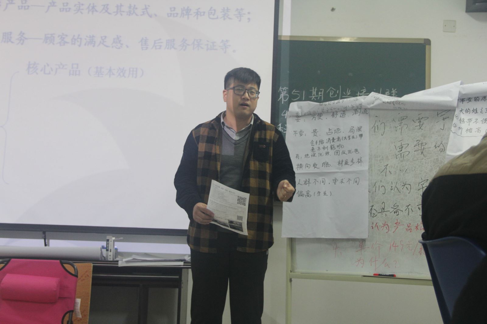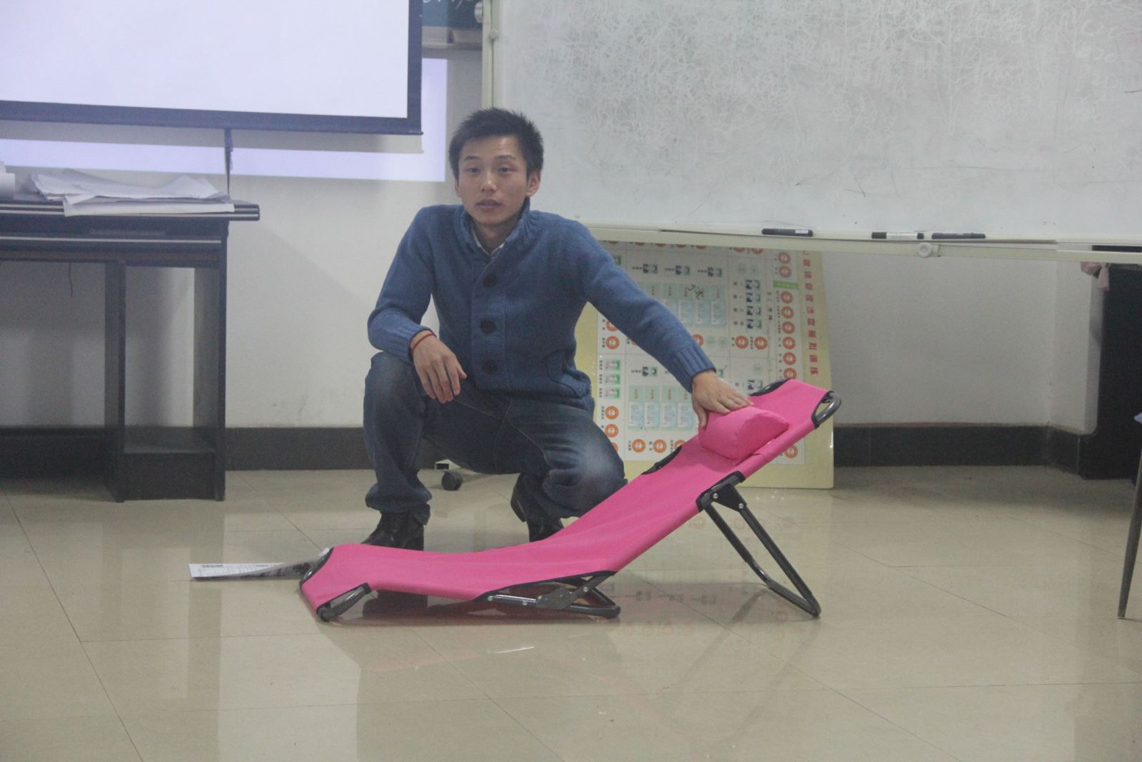 此次课堂以“市场调研和营销策划”为主题,段老师清晰而富有感染力的话语,传授着创业经验和方法。并提出了“人无我有,人有我优,人优我新,人新我特”的倡导,激励着太阳成学子创业的激情和信心。本次邀请到我校SIYB 创业培训第36期学员陈联祥分享创业经历。今年陈联祥和他的创业团队创立了宇宙大学公司,推出了第一款具有国家实用新型专利的产品“宇宙大学椅”,陈联祥现场介绍演示了该产品的性能和用法。在老师们的讲授和指导下,大家根据课堂主题结合“宇宙大学椅”产品的营销积极讨论、相互交流、引爆创意火花。理论联系实践很好地达成了本次课堂教学的目标,激励了湖工学子的创业,也为正在拼搏的创业学子提供了有益的帮助。