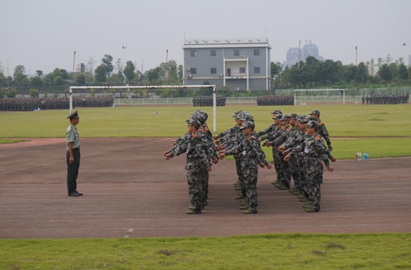 在每天的军训场上,几乎是一成不变的风景:教官严肃的面孔,沙哑的口令声,同学们贯彻长虹的叫声以及额上晶莹的汗水和湿透的迷彩服。教官是严格的!每一个教官都告诫我们:“在军队中,必须要有很强的纪律性,一切行动听指挥,说一不二。”军训训练期间想要动就必须得打报告。教官又是温柔的!,教官会偶尔念念他们写的心得,提醒他们抬头挺胸,看住前一个人的后脑勺。还帮学生翻好来不及翻正的衣领,扣上没扣好的衣扣。铮铮硬汉,骨子里却有万分柔情。