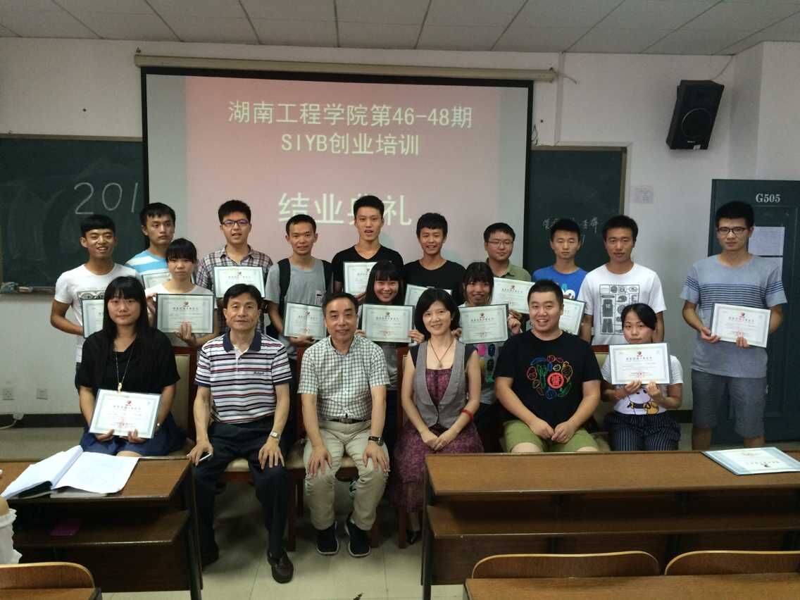 2015年7月9日下午,管理学院在主校区G505举办SIYB创业培训结业典礼,管理学院院长吴振顺、学办主任罗荃、创业培训讲师段超群、宋志航出席典礼,典礼由段超群老师主持,来自全校各学院第46-48期培训班的95位学员参加典礼。