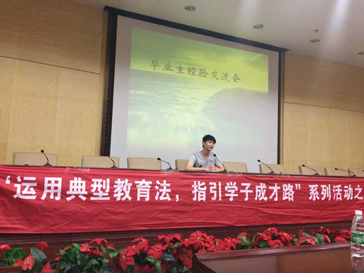 为了进一步营造积极向上的学风。管理学院于2015年6月9日晚7点,在新校区二报告厅召开了2015届优秀毕业生经验交流会。此次经验交流会有幸邀请到了考上了暨南大学研究生的谭泽宇学长、考取公务员的汤懿学长、优秀毕业生朱瑞丽学姐、毕业生优秀干部王岳学长以及英语四、六级考试大神张铭文学长。通过他们的故事,分享他们的优秀经验,为同学们指明努力的方向。