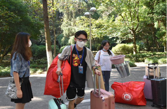 学生会成员帮忙搬行李