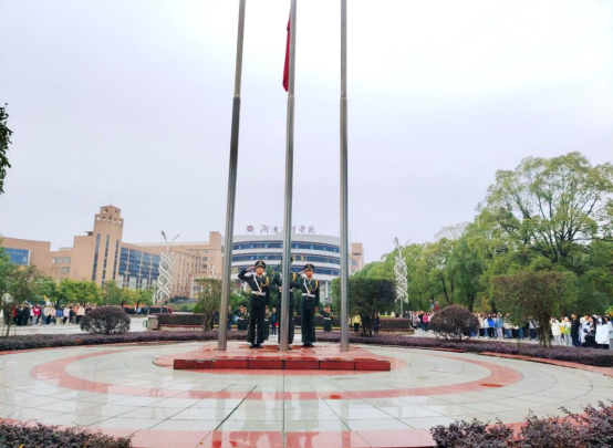 升旗仪式在全体师生的校歌声中落下帷幕。