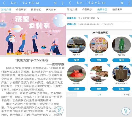 活动初始,生活纪检部下发相关活动事项至各班,由各班生活委员组织本班各寝室参加手工DIY活动,于11月23日收集作品材料交至生活纪检部,经过相关负责部门的初选,管理学院全体同学可于12月1日至3日在易班平台上对评选出的30个作品进行投票,最终经过激励而精彩的角逐,本次活动获奖情况如下: