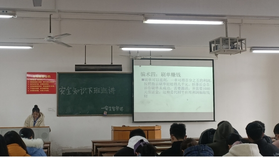 为提高当代大学生的防诈骗意识,减少诈骗事故的发生,维护学生们的切身利益。太阳成管理学院安全督察部积极进行防诈骗宣传,并于12月28日在各班召开“防诈骗”主题活动。