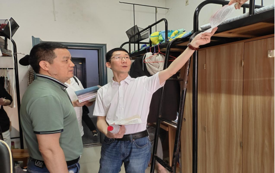 在明德宿舍区走访过程中,学院领导和老师们对寝室的安全隐患进行了排查,尤其是电线、插口、用电器等各个存有隐患的角落。余博强调,在寝室要注意用电安全,严禁使用违规电器,提醒同学们要提高安全防患意识,切不可粗心大意。针对寝室卫生和个人财产安全,希望宿舍长能够勇挑重任,督促同学们爱护寝室环境,常开窗通风,保持寝室空气流通,妥善保管贵重物品,共同营造良好的学习生活环境。