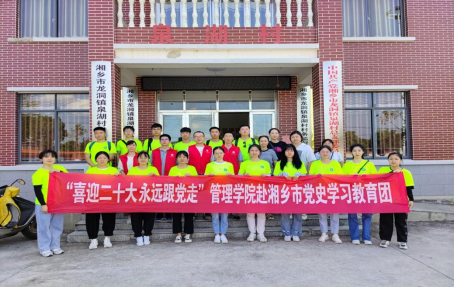 心中有信仰,脚下有力量。7月13日,管理学院“喜迎二十大 永远跟党走”党史学习教育团前往湘乡市龙洞镇泉湖村开展党史教育宣讲、调研活动,切实将党史学习教育同解决实际问题相结合,全力当好“宣传员”和“服务员”。
