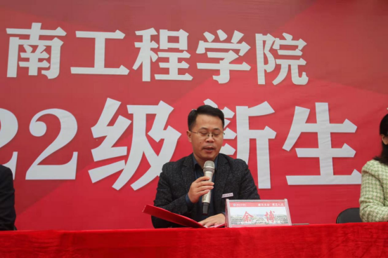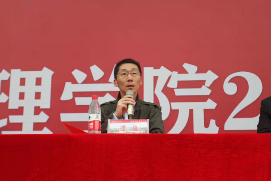 党委副书记谭超就学生管理相关规定作简单介绍,着重进行安全教育宣讲,在生活上引领同学们谨遵学校管理制度,增强防范意识。