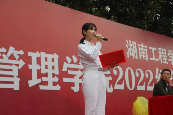 大会在庄严的国歌声中拉开序幕。“路漫漫其修远兮,吾将上下而求索。在新的起点上同学们应志存高远,不断追求新知、真知、真理,积极进取,始终保持昂扬向上的精神状态。”管理学院院长徐运保发表讲话,他寄语管理学院学子要有朝气、志气、才气、勇气,在人生的道路上,志存高远、追求卓越;刻苦努力、锲而不舍;大胆探索、敢为人先,努力成为堪担民族复兴重任的时代新人。