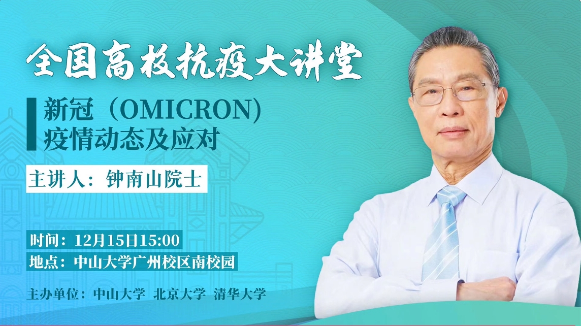 “共和国勋章”获得者、中国工程院院士钟南山在“全国高校抗疫大讲堂”作题为《新冠(Omicron)疫情动态及应对》的科普讲座。在近两个小时的讲座中,钟南山院士系统分析了全国范围第二波奥秘克戎疫情的生物学特征和致病性,对如何加强个人防护提出8条建议,并对时下抗疫热点问题进行答疑解惑,同时指出“我们不要因为感染而恐惧”。