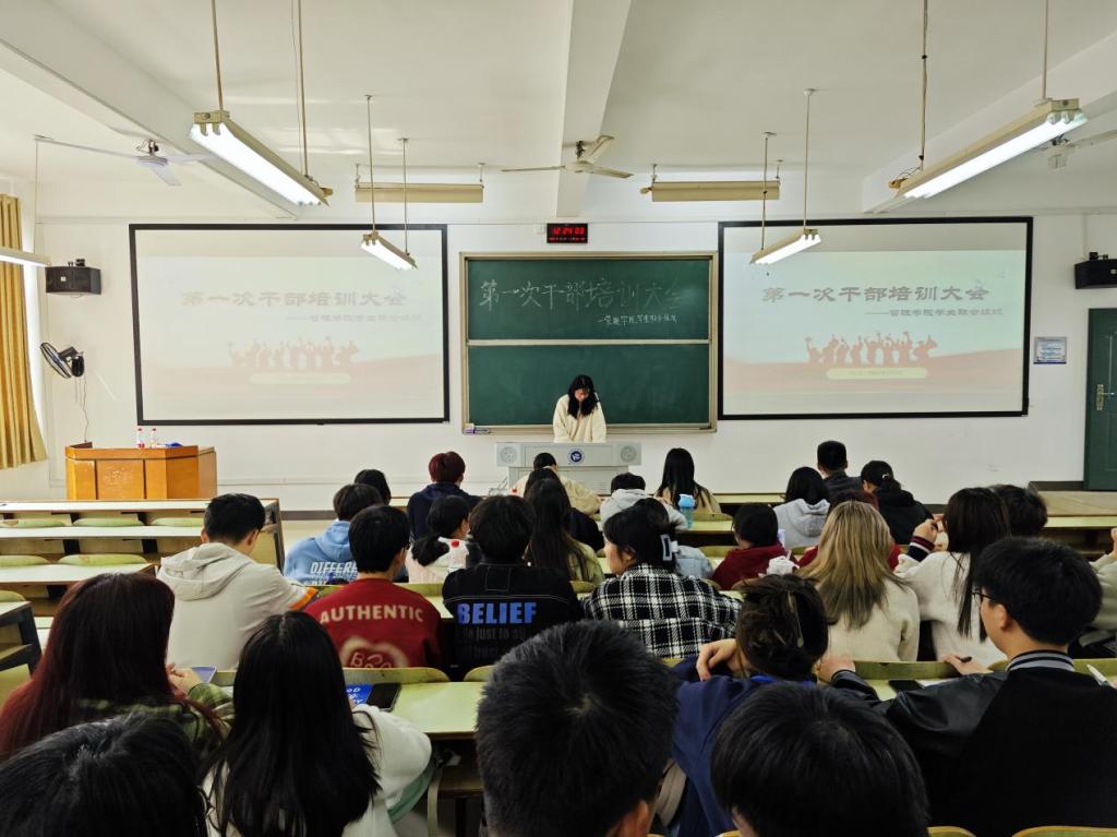 3月7日,管理学院学生联合组织在D401举行本学期第一次干部培训大会。全体学生干部和主席团成员参加本次会议。