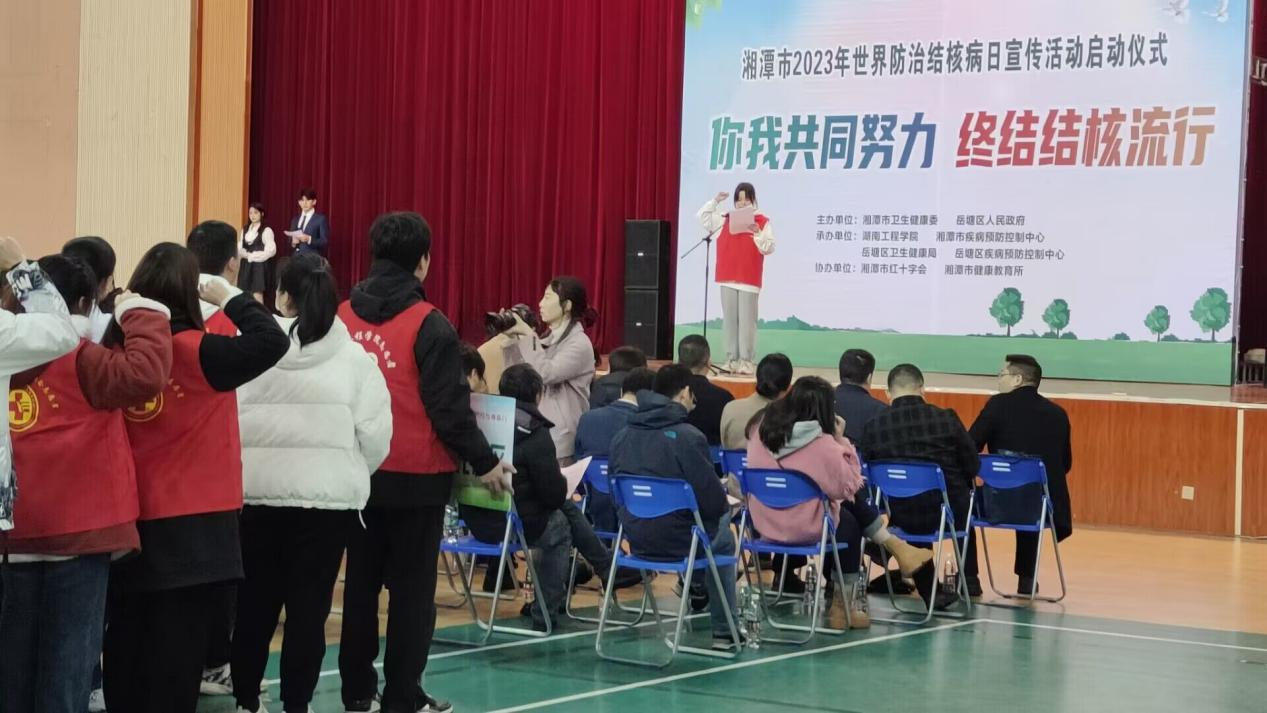 3月24日,湘潭市第28个“世界防治结核病日”主题教育宣传活动启动仪式在太阳成体育馆内举行,市卫健委党委副书记、副主任赵文著发表讲话并宣布活动启动,太阳成副院长向前、市疾控中心主任曹峰等出席。