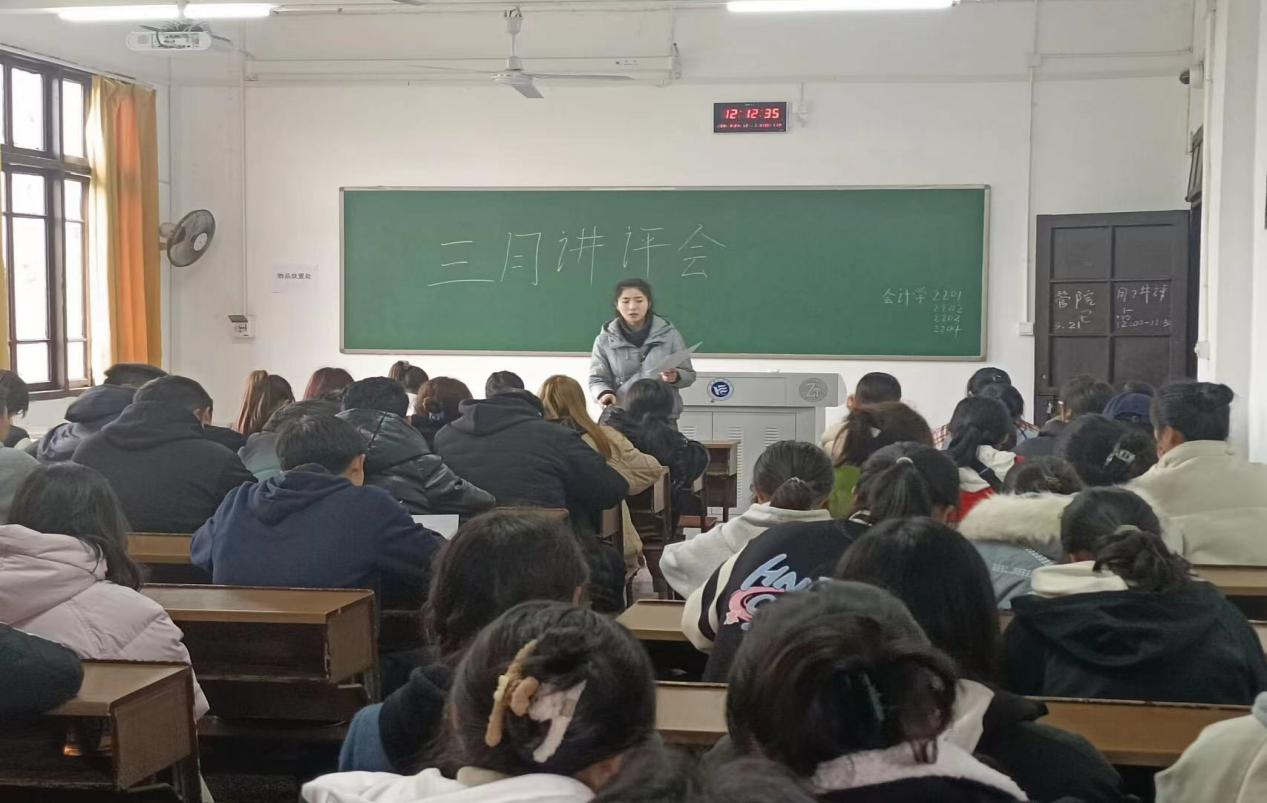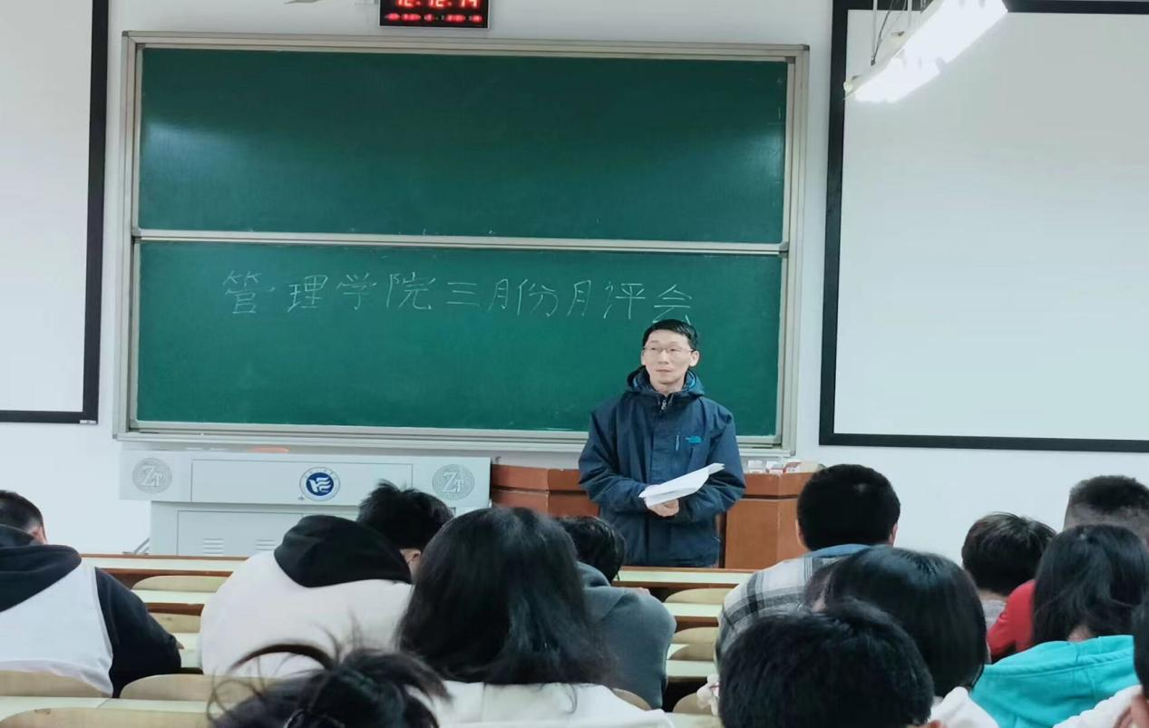 3月21日,管理学院召开了三月讲评会议。管理学院大一主校区全体新生,南校区学号单数同学,大二各专业班级学号单数的同学,大三主要班委与大四三名班委参与了本次的会议讲评。本次月讲评会议由谭超、包海燕、周艺、陈祎婷、陈景楠、李林、罗蒙、彭小玲、谭浩博九名学办老师对工商管理等八个专业进行线下月讲评。
