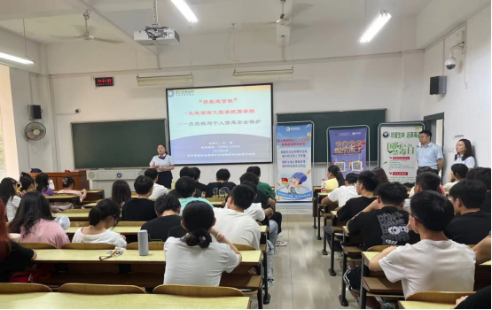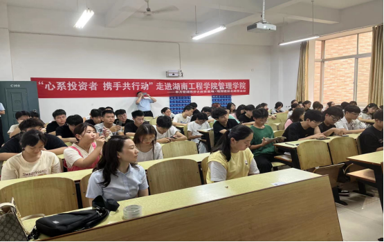 为落实“投教进百校”宣传活动,提高同学们对非法证券以及各类诈骗方式的鉴别能力和防范意识,更好地构建“平安和谐”校园,6月20日下午,申万宏源证券湖南分公司湘潭建设北路营业部举办了“防非反诈”讲座,此次讲座面向管理学院工商管理22级同学,在主校区教学楼C座102教室开展具体讲座活动。