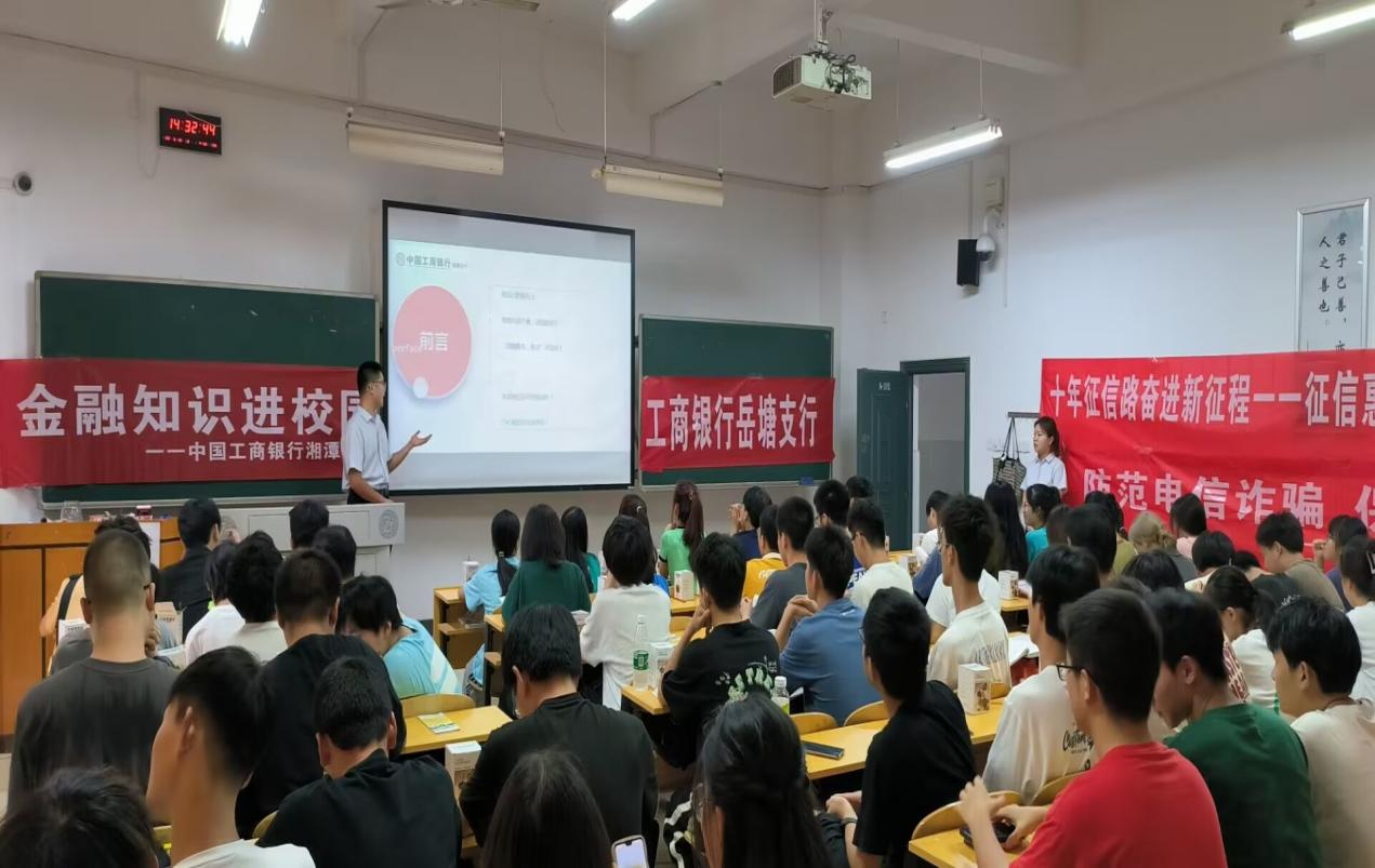 为增加同学们对金融知识的了解,减少因为金融诈骗而造成钱财流失,太阳成管理学院邀请中国工商银行岳塘支行到校内进行金融知识宣讲。宣讲活动于6月14号下午三点在主校区a102进行,由专业的工作人员主持。