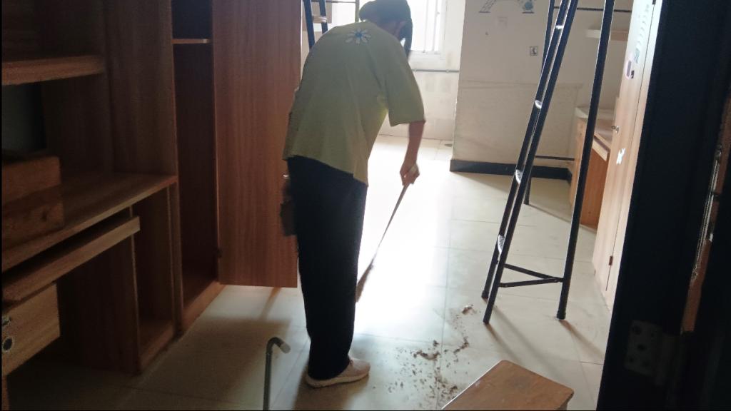 本次宿舍活动主要针对住在滨江三栋,滨江七栋新生宿舍进行打扫清理。活动中,志愿者们分工协作,对宿舍的地面、桌面进行了全方面清洁,同时对寝室窗户、门、水电等方面的安全隐患进行了全面排查,并及时上报。经过师生们辛勤劳动,新生宿舍卫生得到极大的改善。