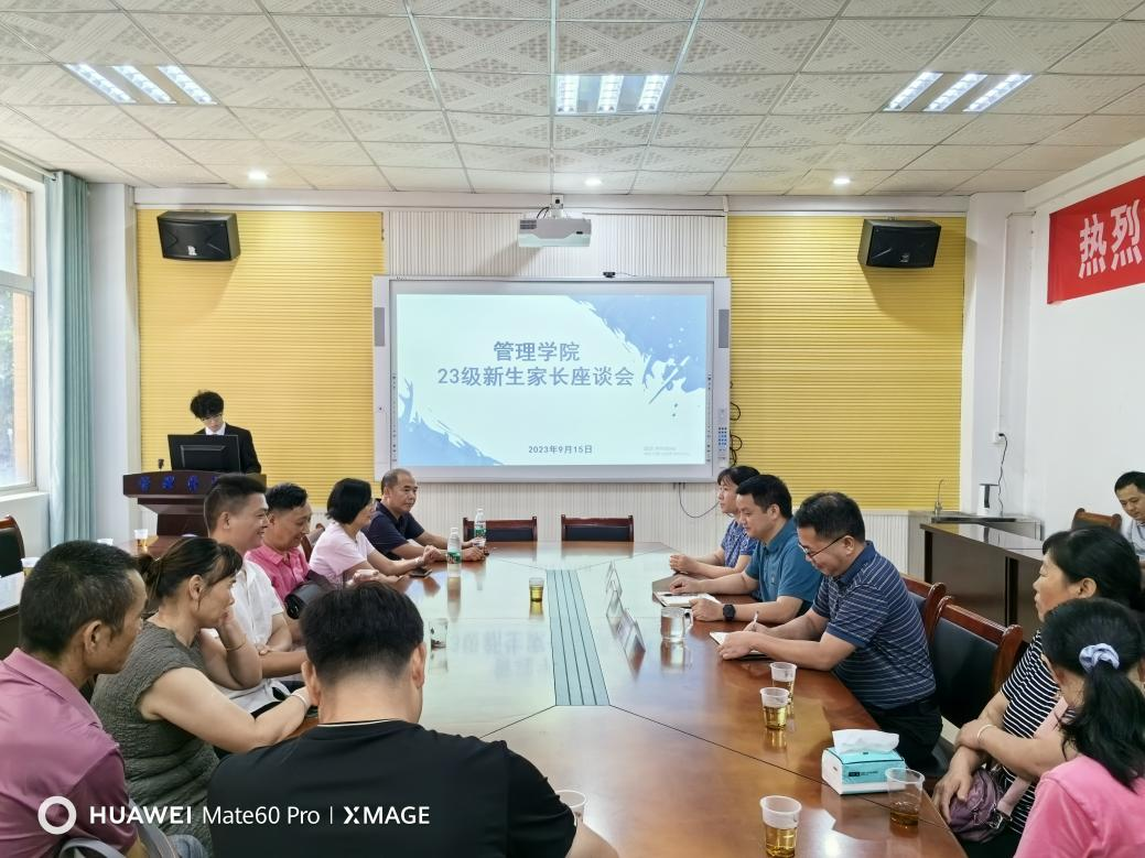 为加强家校联动,实现家庭教育与学校教育并重,管理学院分别在主校区F104和南校区一教213组织召开家长座谈会,学院领导班子成员出席家长座谈会,院长徐运保在座谈会上致辞,欢迎家长的到来,并就学院办学情况、专业特色、学校生活等进行详细介绍,在互动交流环节领导班子成员耐心、细致地解答了家长的问题。工商管理2301徐孜父亲表示:“学院领导和老师们都很热情,学院办学实力也很雄厚,把孩子放到管理学院我很放心,希望孩子在这里能学有所获,不断进步。”
