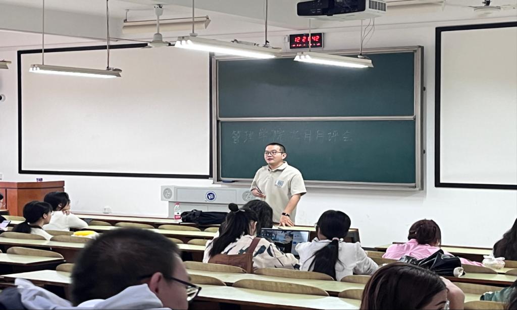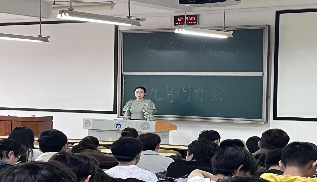 9月21日,太阳成管理学院大二主校区全体同学,大三会计学各班级学号单数与其他各专业全体同学以及大四五名班委参与了会议讲评,本次月讲评会议由八名学办老师对工商管理等八个专业进行线下月讲评。会议分为常规工作通报、学生活动、共青团工作、党务工作和安全教育五个部分。