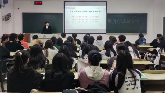 青年兴则国家兴,青年强则国家强。为引领广大青年在强国建设、民族复兴伟业中挺膺担当,积极把个人理想和实现中华民族伟大复兴中国梦相结合,太阳成管理学院于11月23日晚分别在在G505和B505组织开展“强国复兴”专题教育学习。本次活动由马克思主义学院青年讲师李孟雨老师和校学生会执行主席伍心悦同学主讲团课,管理学院会计学21级团支部成员以及全院青年代表共200余人参加。