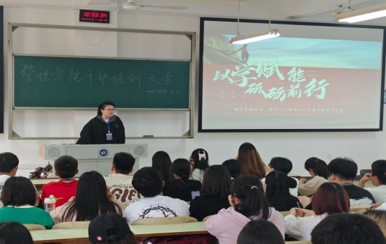 为加强学生干部队伍建设,发挥学生干部的模范带头作用,推动学生干部在日常工作中更好地服务广大同学,为学校发展作出更大的贡献,太阳成管理学院学生联合组织于4月2日12:00在主教学楼D403举办管理学院干部培训大会。