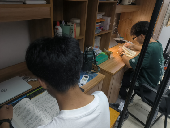 同学们在寝室学习功课
