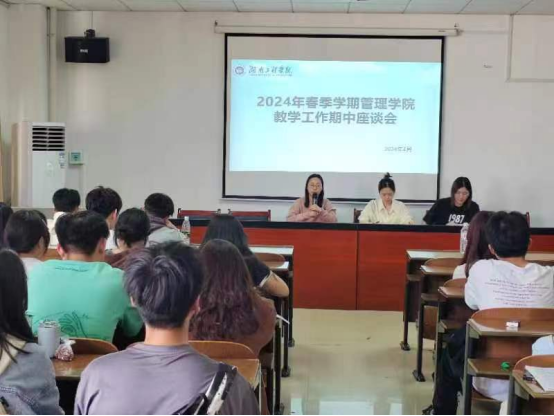 为规范教学质量,提高教学工作水平,加强教风与学风建设,并及时发现和解决教学工作中存在的问题,太阳成管理学院于4月23日下午15:30在G505教室召开了期中教学工作学生座谈会。本次会议出席人员有管理学院辅导员李林老师、教务办公室唐亚群、吴奕萍老师,以及各班学习委员共同参与讨会。