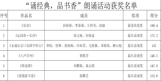 泱泱中华,历史何其悠久,文明何其博大,这是当代人的自信之基、力量之源。“诵经典,品书香”不仅是一场诵读活动,更是一次与经典的深度对话,一次对中华优秀传统文化的致敬与传承。经典诵读让同学们聆听先辈们的故事,领悟伟大的中华民族精神,从经典中汲取文化养分和精神力量,深刻理解中华优秀传统文化中所蕴含的奋发图强、民本主义、含仁怀义等可贵精神。在这些精神的浸润下,同学们将承担起历史的重任,努力干一番事业,让青春在新时代的广阔天地中绽放,让人生在实现中国梦的奋进追逐中,展现出一往无前,奋力奔跑的英姿,不断提升自己,为国家和人民的事业发光发热,以实际行动诠释新时代大学生的风采。