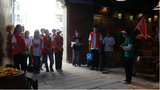 实践团走进麻石古街,先后参观了“回龙门”古建筑、郑家大屋、故事会文化馆,观看了比肩楼房的高跷、精致华美的服装道具和栩栩如生的雕刻人像,虽未能亲眼目睹抬阁故事会的空前盛况,但了解了故事会“比”的核心要义。追忆发生在长乐的革命运动和抗日救亡英雄故事,了解了汨罗江畔人民热情投身革命,为伟大的信仰不懈奋斗直至英勇献身。