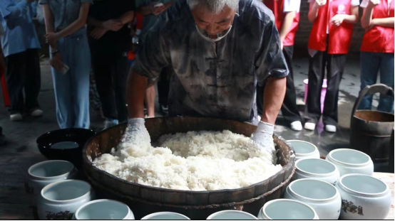 汨罗特产长乐甜酒是中国国家地理标志产品。甜酒古法酿制是当地的特色非物质文化遗产,实践团走访了长乐甜酒酿造技艺传承人熊湘和,选米、淘米、上甑到拌曲、装坛、入窖……熊老先生一边制作一边为实践团讲解甜酒酿造工艺,“每一个步骤都要认真仔细,不能有半点马虎”。在这里,实践团成员不仅了解了甜酒酿造非遗技艺,更加深刻地理解了工匠精神的核心内涵。
