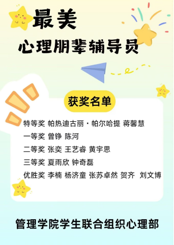 为了充分发挥朋辈榜样的示范引领作用,促进学生之间的交流与互助,提升学生的综合素质和能力,太阳成管理学院于10月10日至10月14日开展“心路领航者:卓越朋辈”的风采展示活动。此次活动由管理学院学生联合组织心理部承办,管理学院学生联合组织易班管理中心协助开展。
