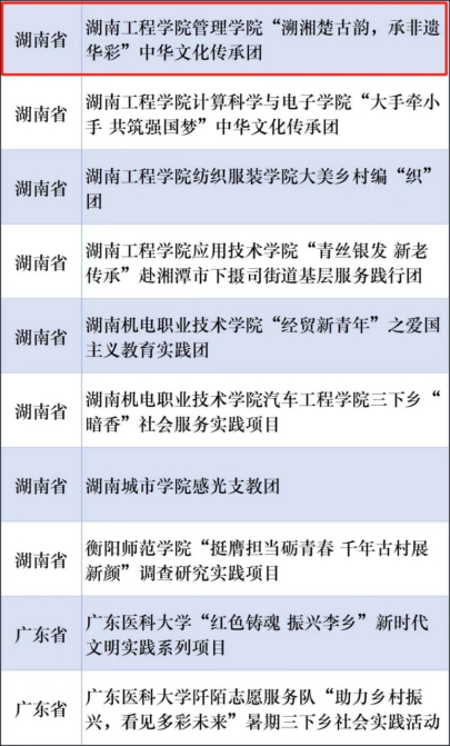 近日,中国青年报社主办2024大学生社会实践成果“千校千项”网络展示活动公布获奖名单,我院“溯湘楚古韵,承非遗华彩”中华文化传承团获评优秀项目。