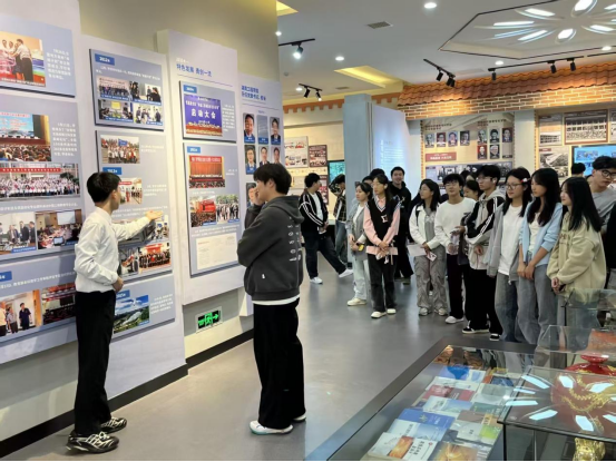 在“校友风采展”区域,讲解员生动讲述校友们在各自领域深耕不辍、建功立业的奋斗故事,让同学们内心激荡。他们久久驻足,用手机拍下校友简介,互相交流感想。国贸2501班的张同学说:“看到优秀的校友前辈在各自领域的成就,我深受鼓舞,我希望自己能向他们一样,为校争光。”